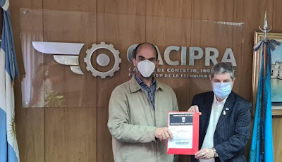 Se formalizó un importante convenio de colaboración entre la Municipalidad de Lanús y la Cámara de Comercio e Industria de la República Argentina. Guillermo Valín (derecha) el director municipal de Comercio Exterior, señaló que “fue un honor entregar este convenio al presidente de Cacipra, Rodrigo Galaz (izquierda) y acercarle las salutaciones del intendente Nestor Grindetti”, y agregó Valin que “este compromiso de trabajo dará muchos beneficios a la pymes de Lanús”.